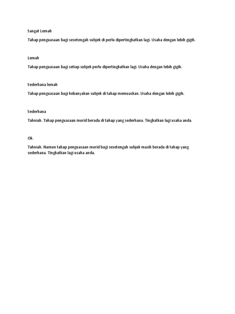 Berikan lebih tumpuan kepada mata pelajaran tertentu. Contoh ulasan guru kelas dalam pbd di sini ruangku berkongsi ulasan guru. Pencapaian anda pada tahap yang memuaskan.